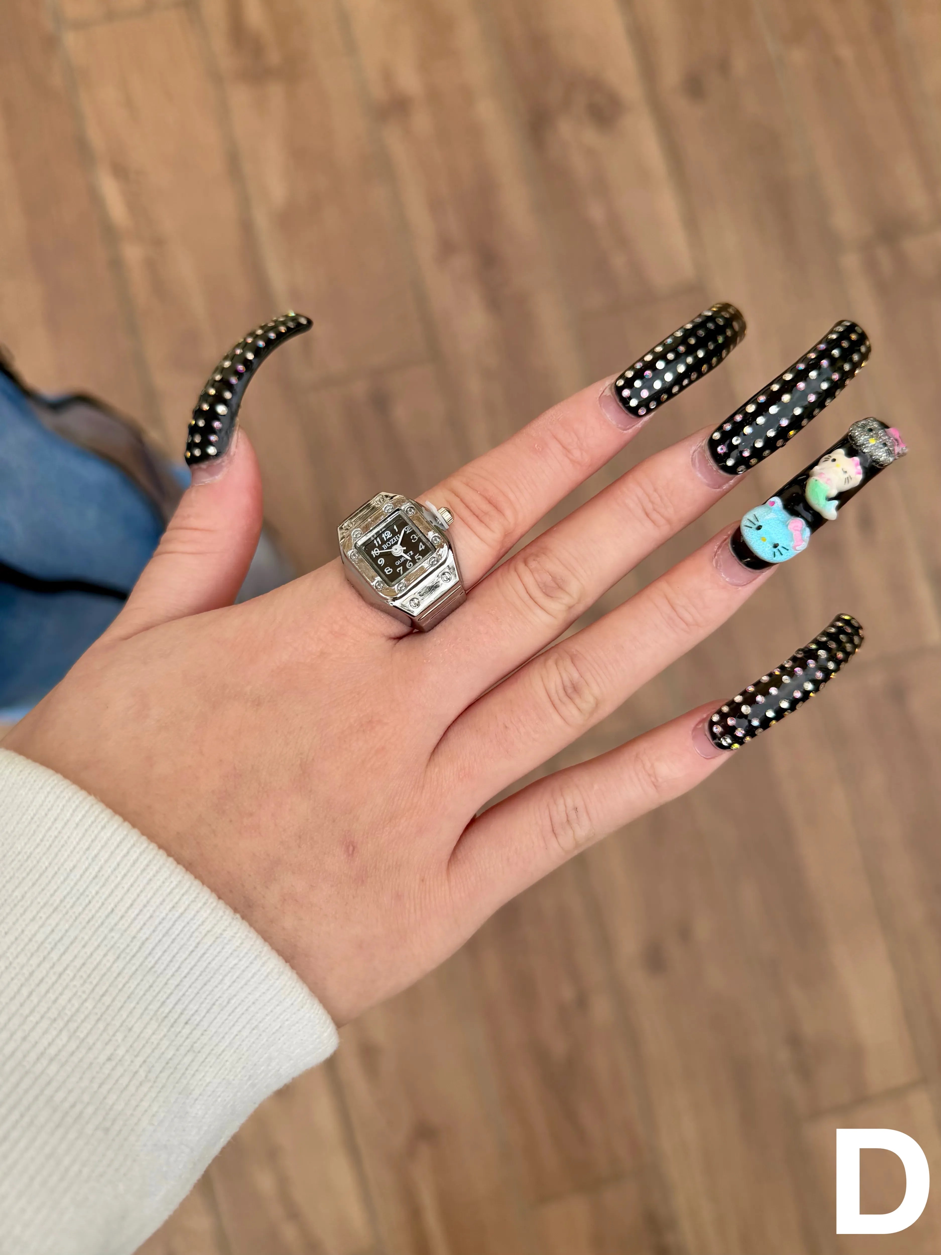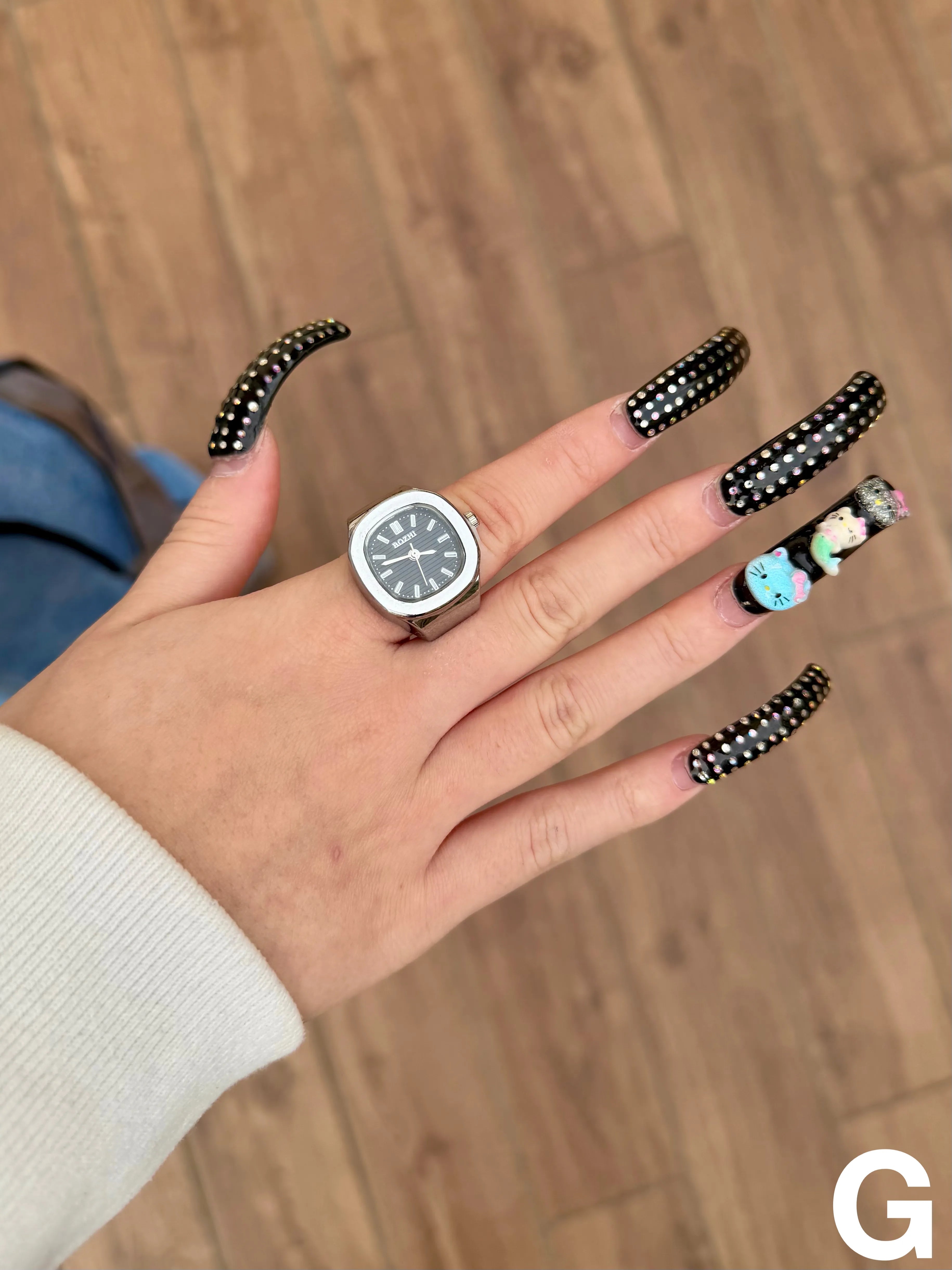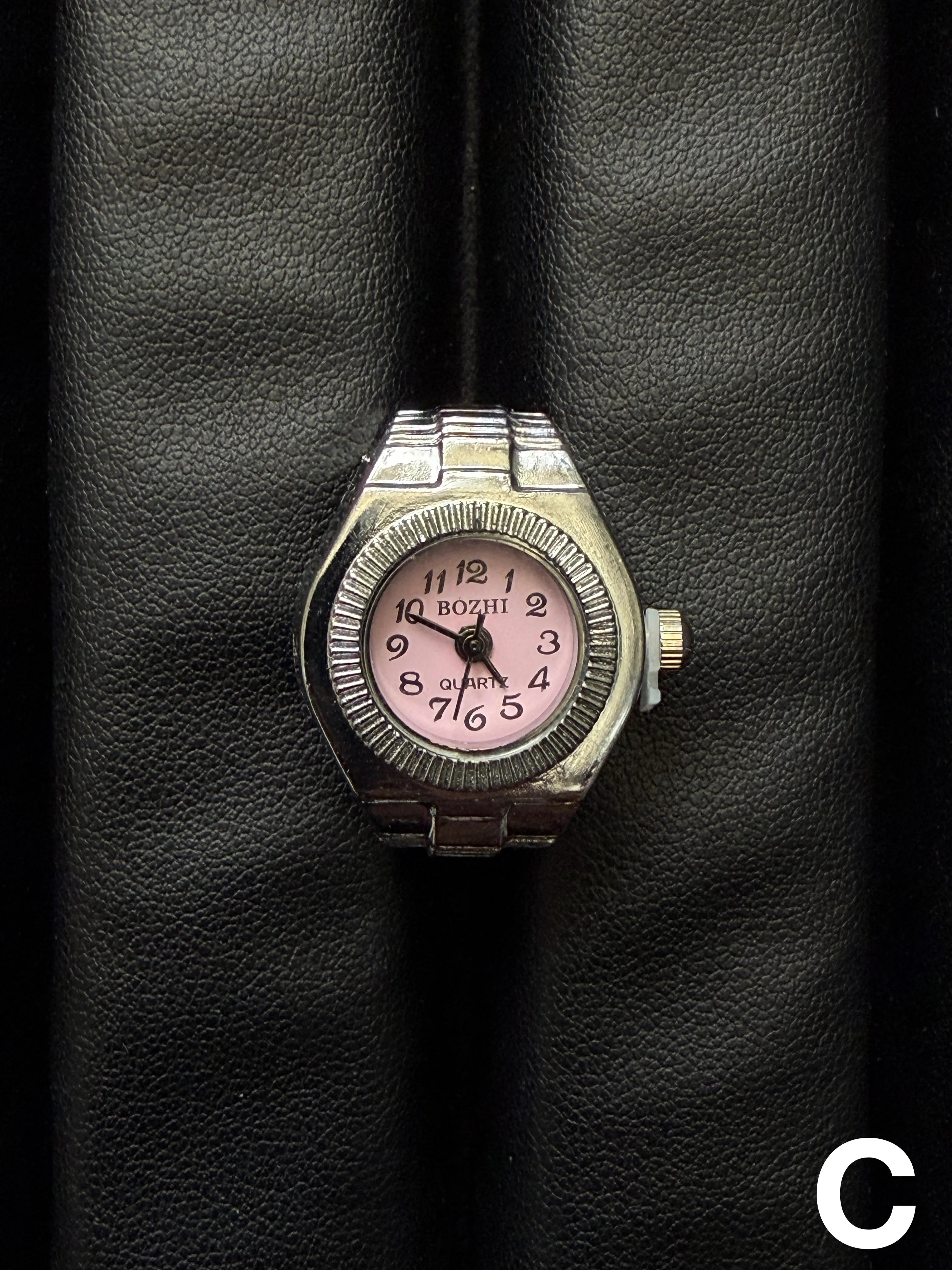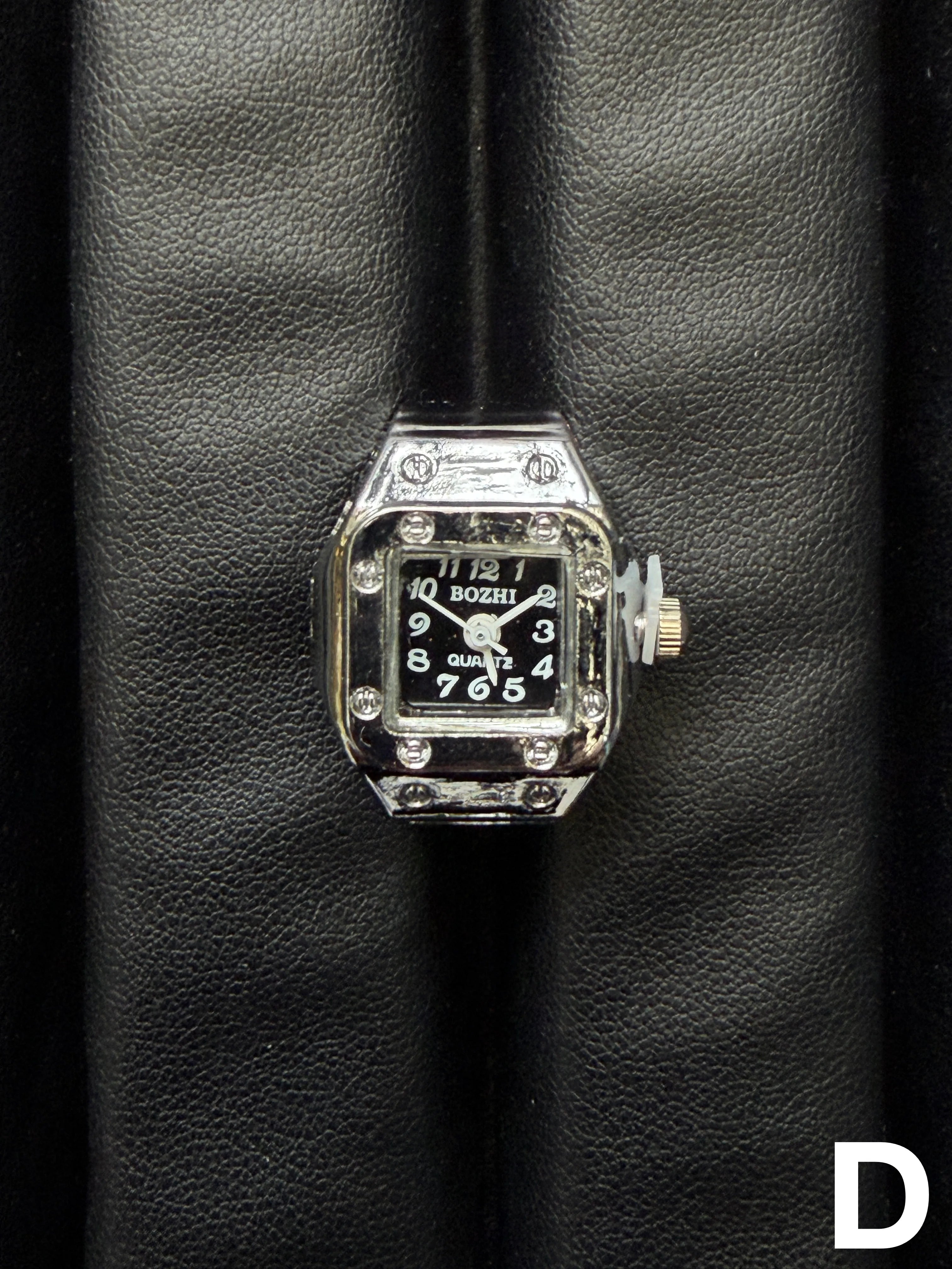 【時計リング ウォッチリング】遊び心溢れる時計型リング◎アクセサリー感覚で楽しめる、時計モチーフのリングウォッチ。クラシックな腕時計デザインをそのまま指先サイズに落とし込んだ、コーデのアクセントになるファッションアイテム。ゴム仕様で伸縮するため、サイズを気にせず着用でき、男女問わず使いやすいユニセックス仕様です。さらに、針は実際に動く仕様になっており、見た目だけでなくディテールまでこだわったデザインに仕上がっています。