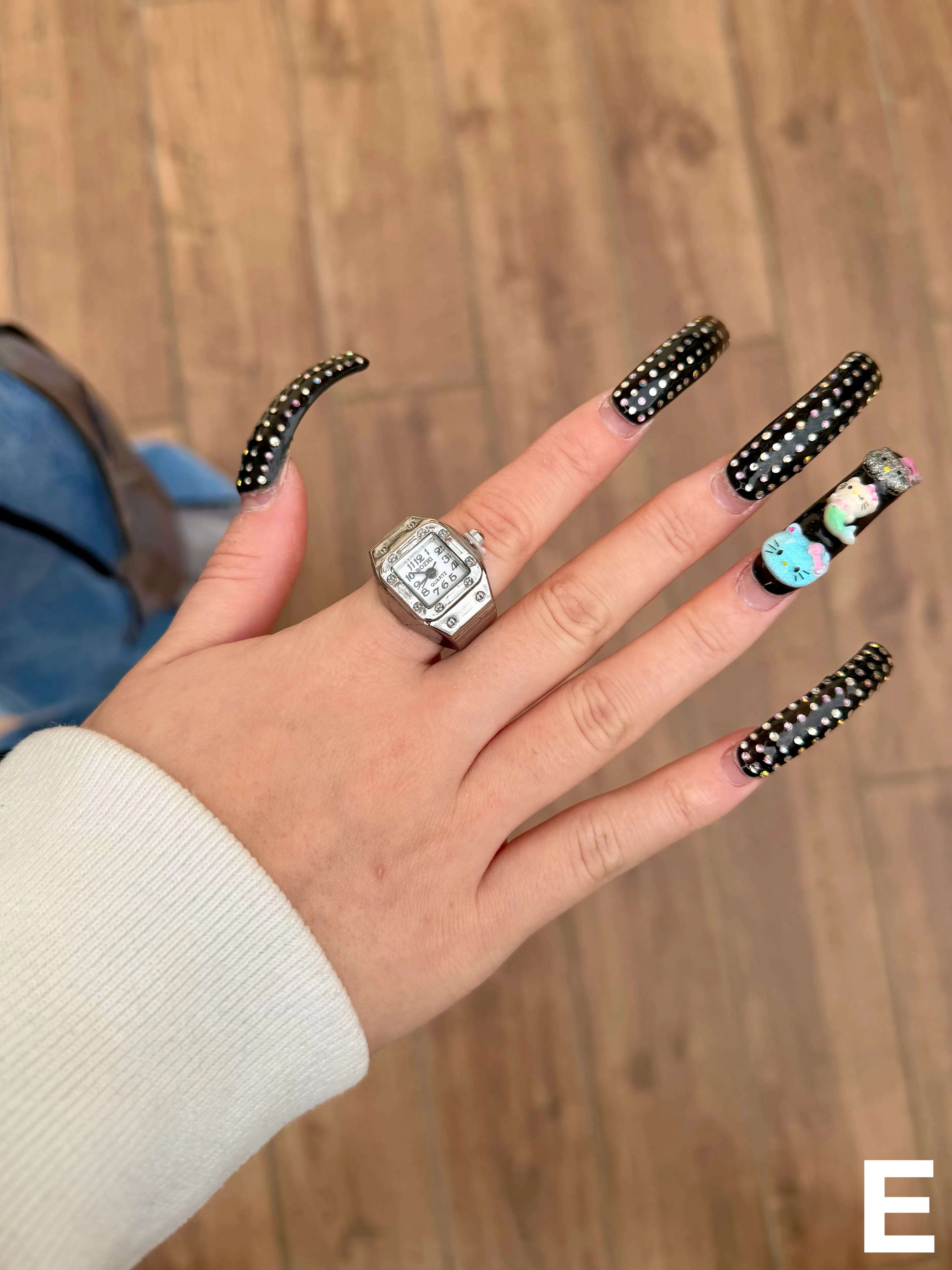 【POINT】⚫︎時計モチーフのユニークデザイン⚫︎針が実際に動くリアル仕様⚫︎ゴム仕様で伸縮し、指にフィット⚫︎サイズを気にせず着用可能⚫︎ユニセックスで使えるデザイン⚫︎コーデのアクセントになる存在感【STYLING】シンプルなシルバーアクセやブラック系アクセと合わせて、モード・ストリートスタイルのアクセントに。デニムスタイルやスウェットコーデなど、カジュアルスタイルにも相性◎。※本商品はファッションアクセサリーとしてお楽しみいただくアイテムです。※針が動かなくなる故障や電池切れが発生した場合、修理・電池交換などの対応は出来かねます。※予めご了承の上、ご購入をお願いいたします。