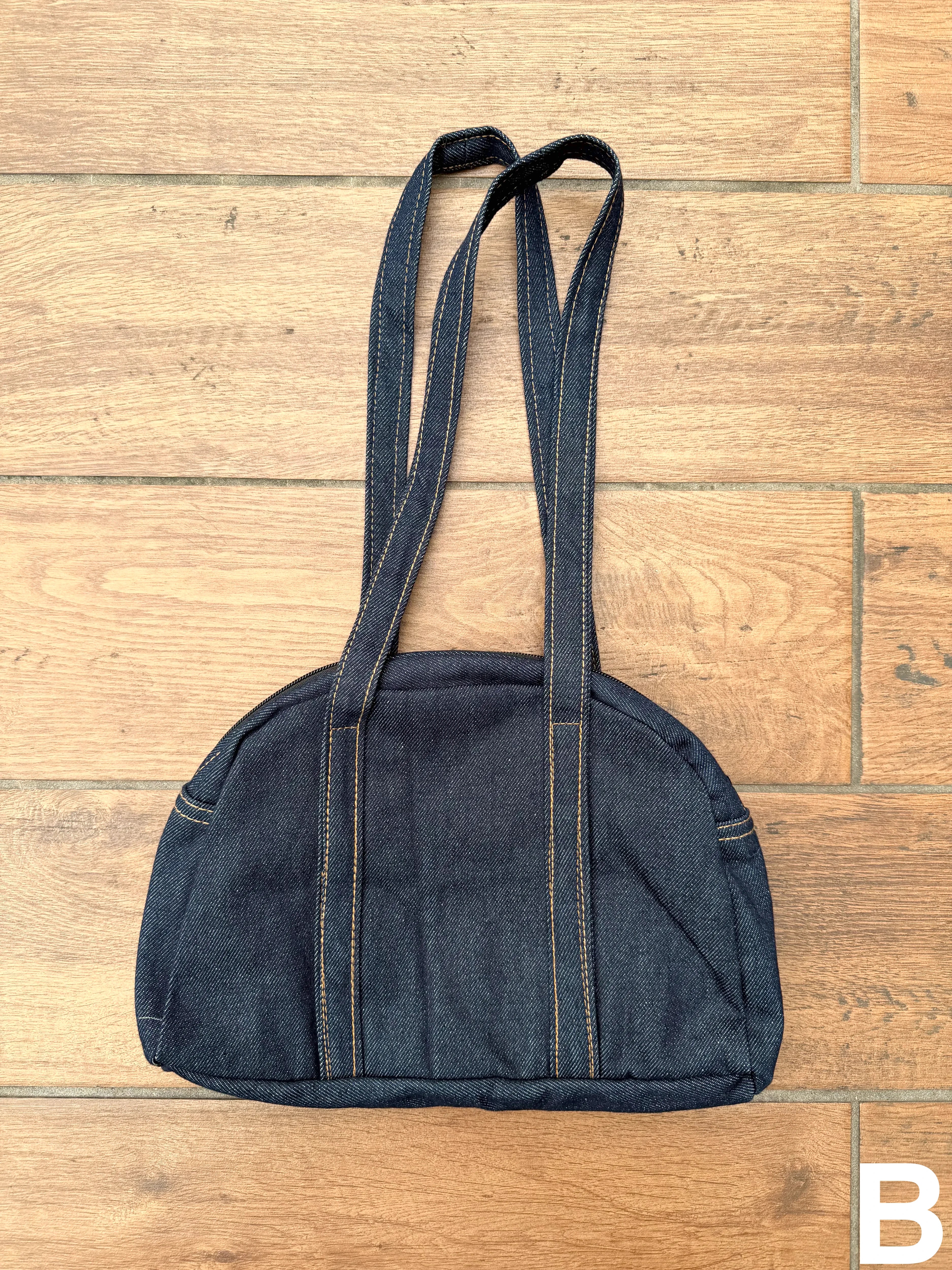 【リメイク デニムボストンバッグ】毎日使いたくなる、リメイクボストン◎ヴィンテージスポーツウェアをベースに再構築した、リメイクボストンバッグ。ころんとしたボストン型のフォルムに、どこか懐かしさのあるスポーティーなムードを落とし込みました。