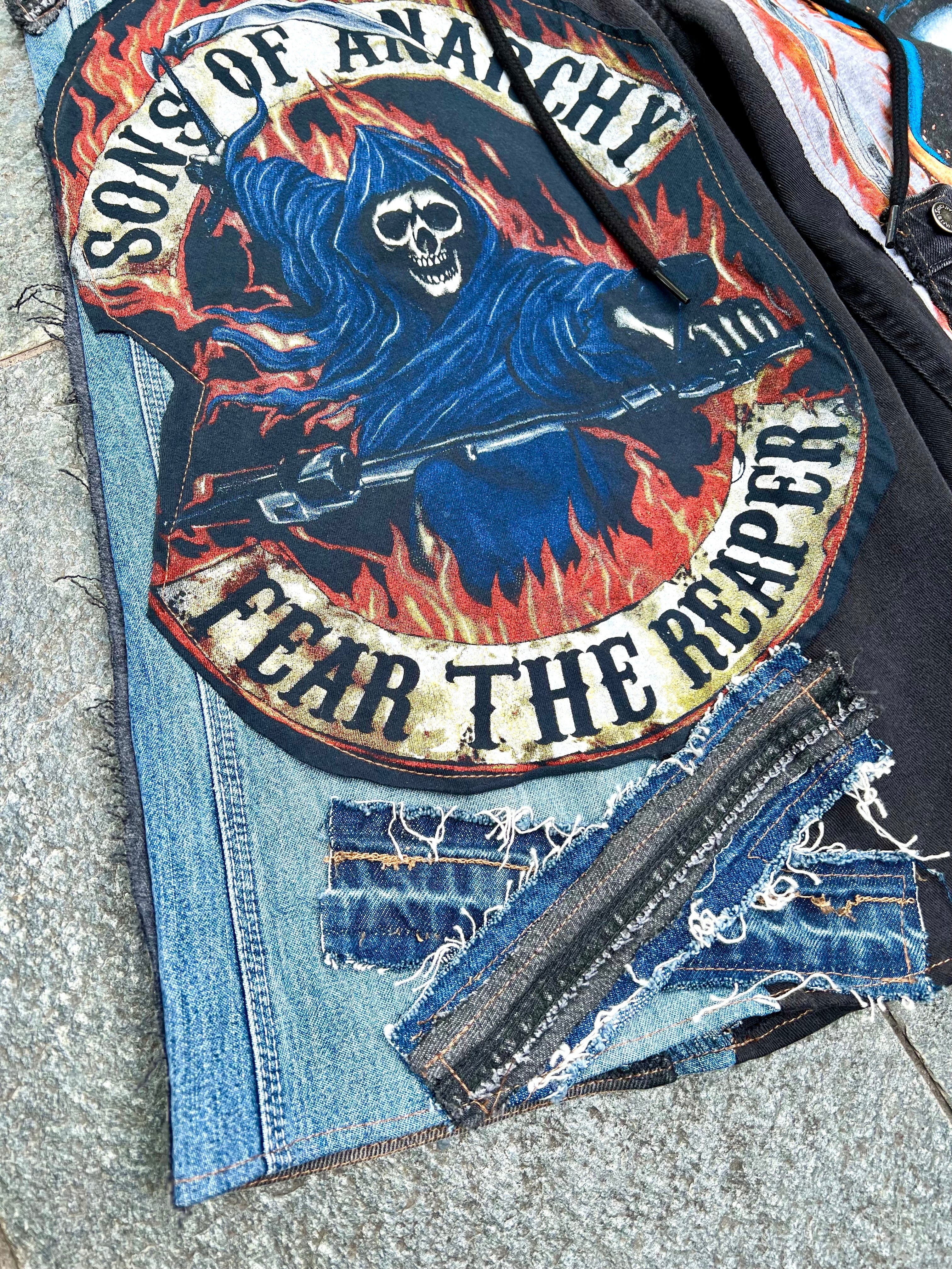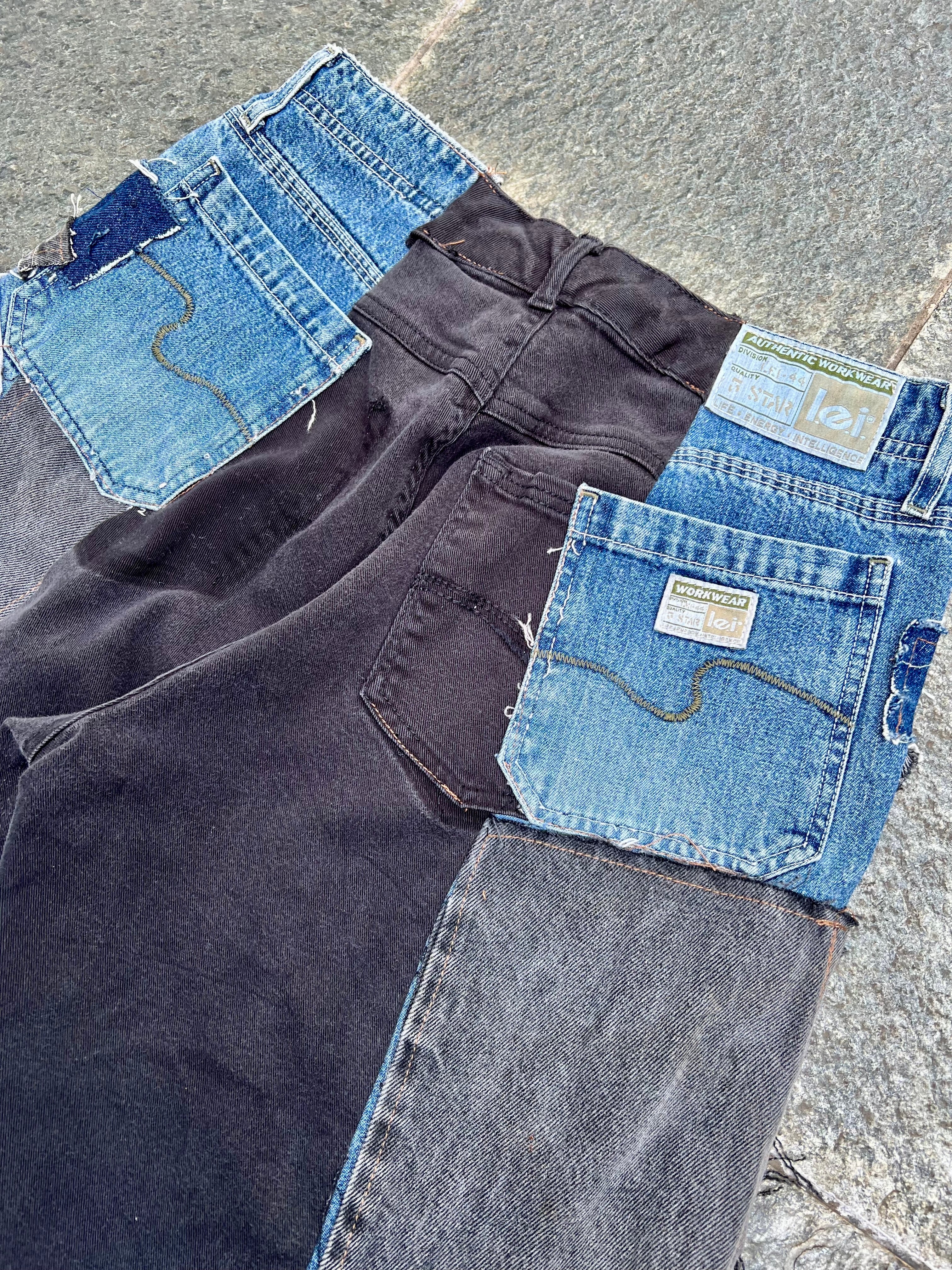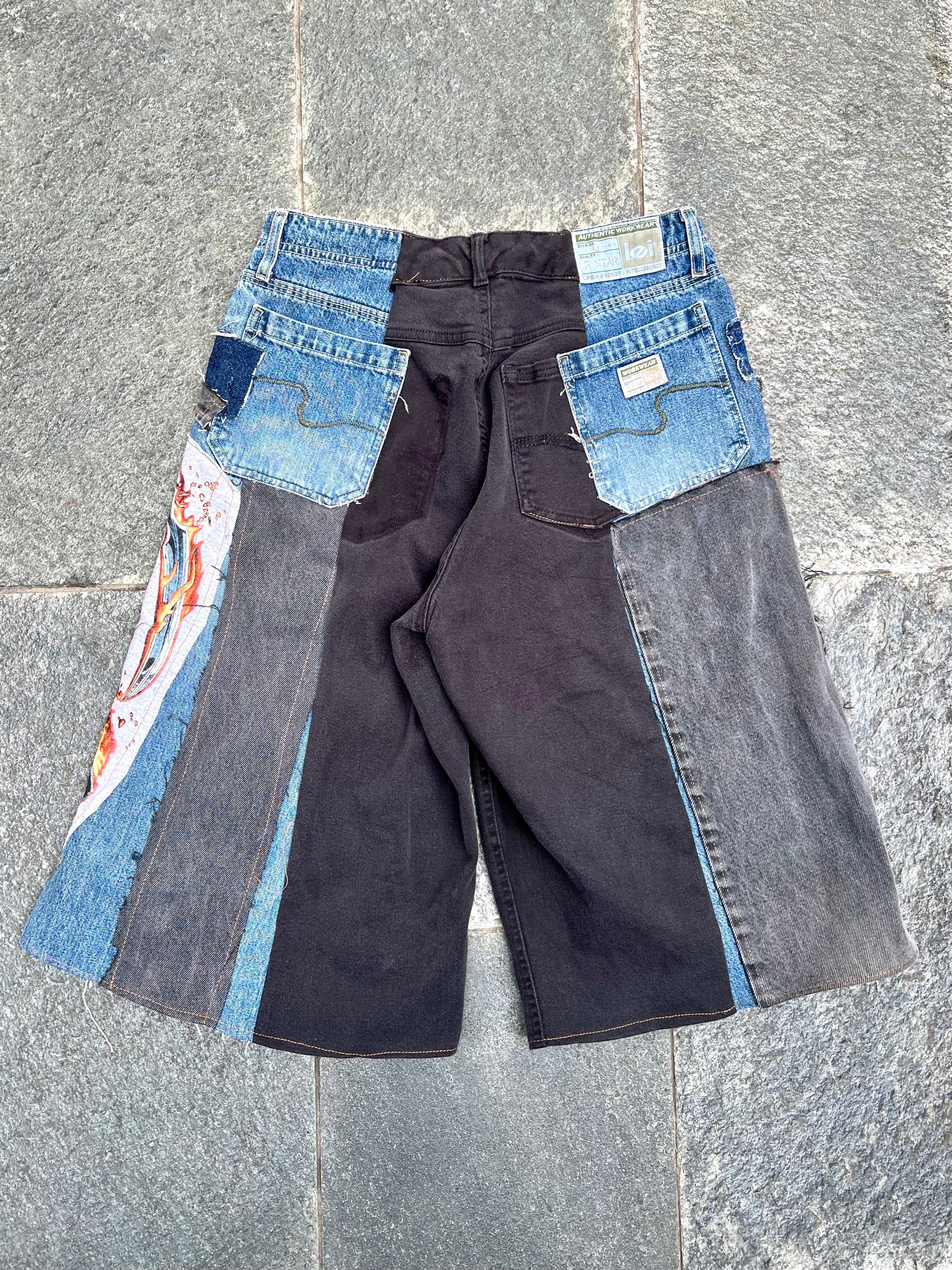【リメイクヴィンテージパッチデニムハーフパンツ】