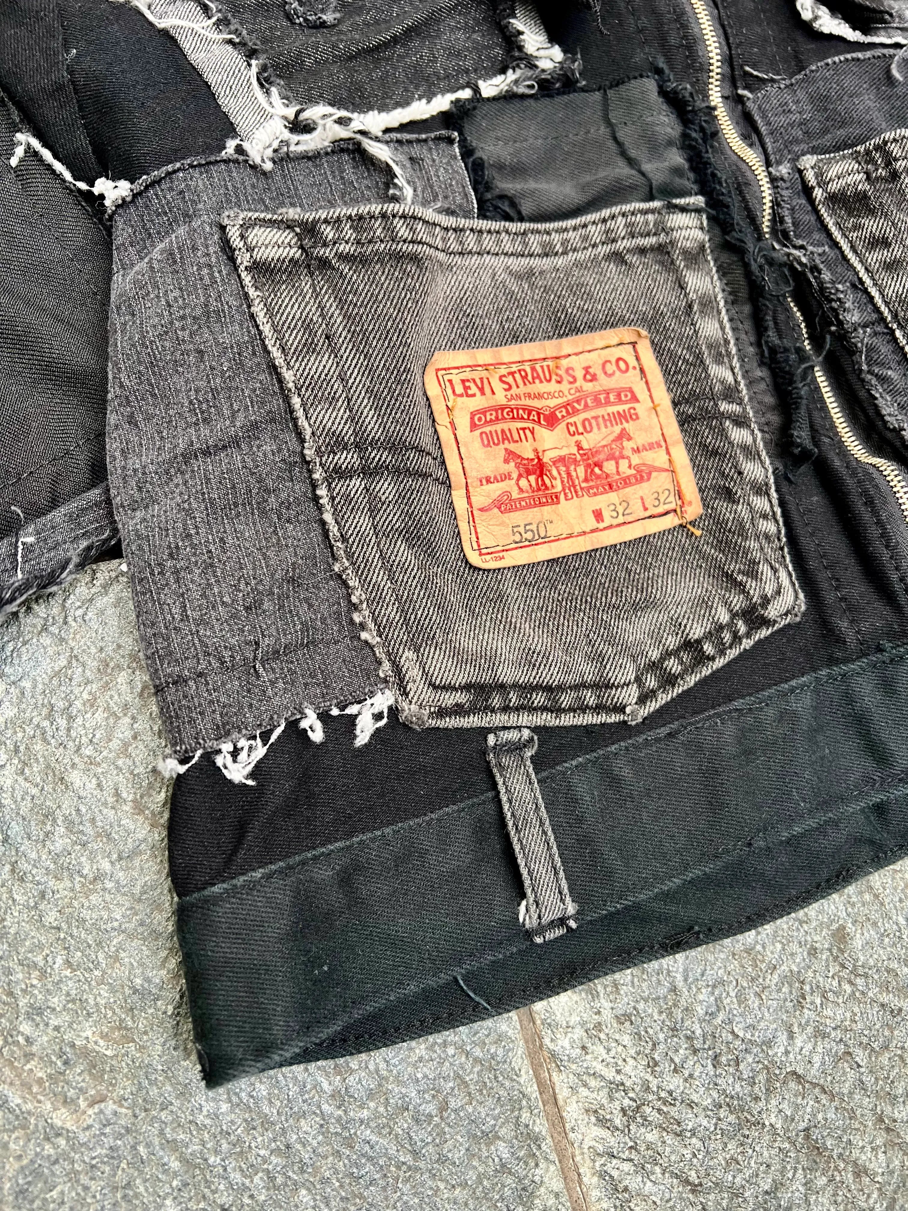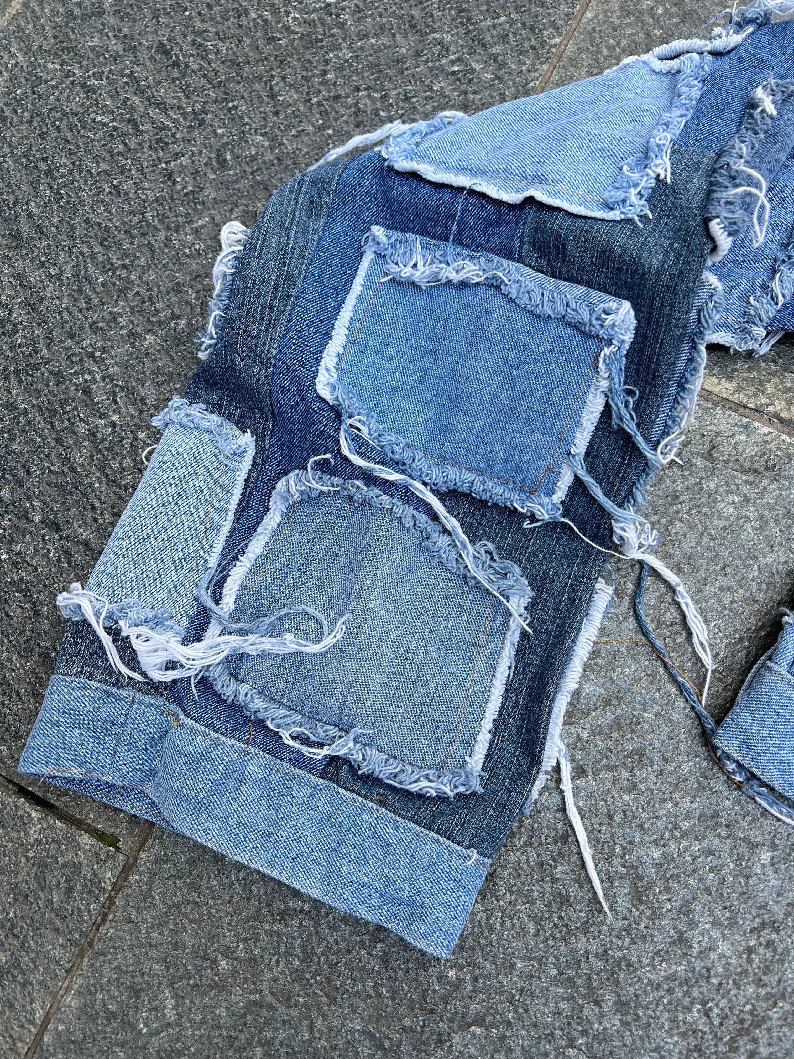 ⚫︎デニムのパッチワークを贅沢に使用したリメイクデザイン