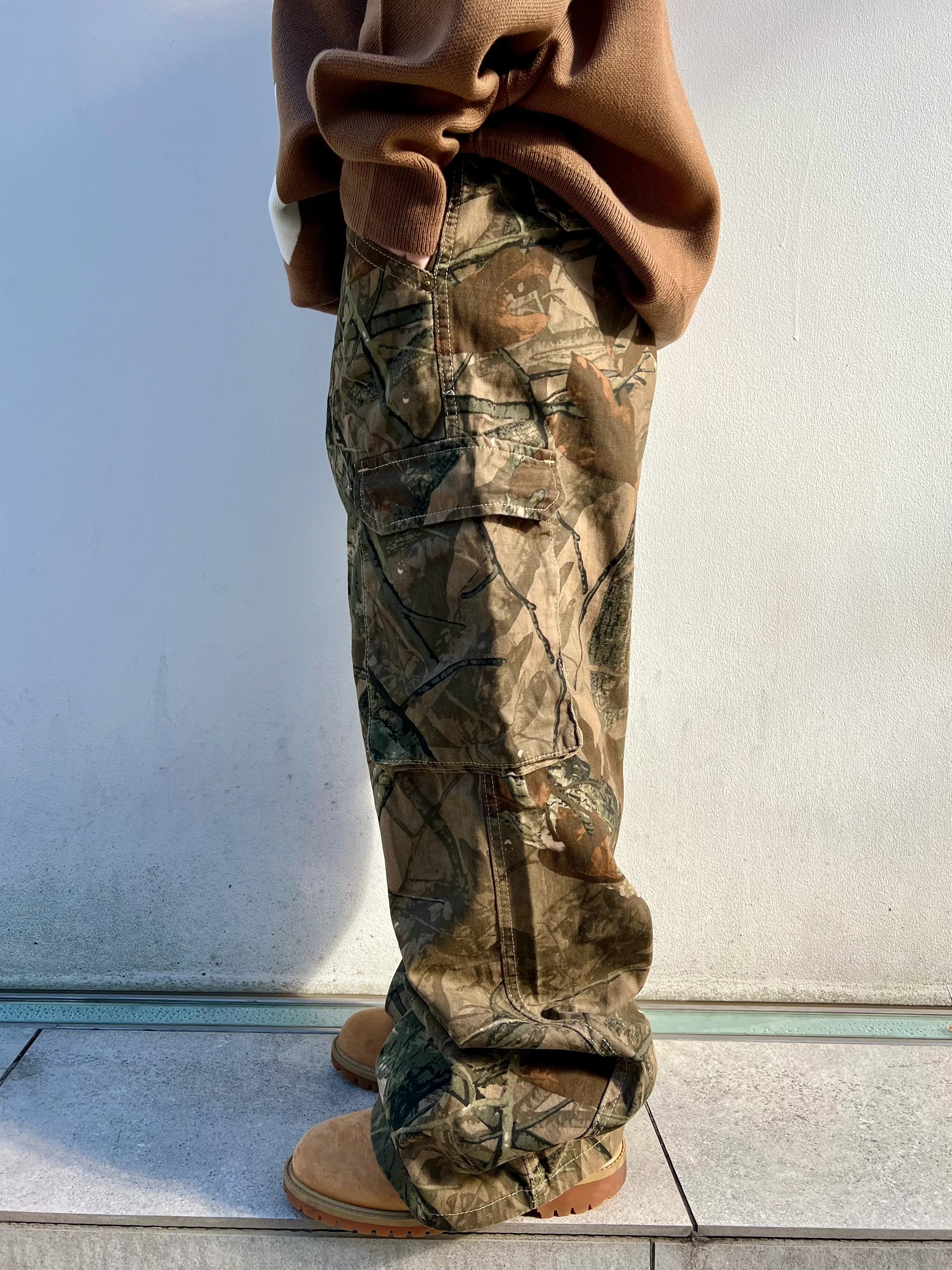 -昨今のストリートシーンで存在感を放っているリアルツリーカモにトレンドのワイドなシルエットのカーゴパンツ。-着こなしに立体感とニュアンスをプラスさせてくれるリアルツリーカモは、柄モノながらも落ち着いたトーンで、コーデにすんなりハマるのも魅力です。-ゆるめのトップスやグラフィックTと合わせるだけで、旬なストリートスタイルが完成します。