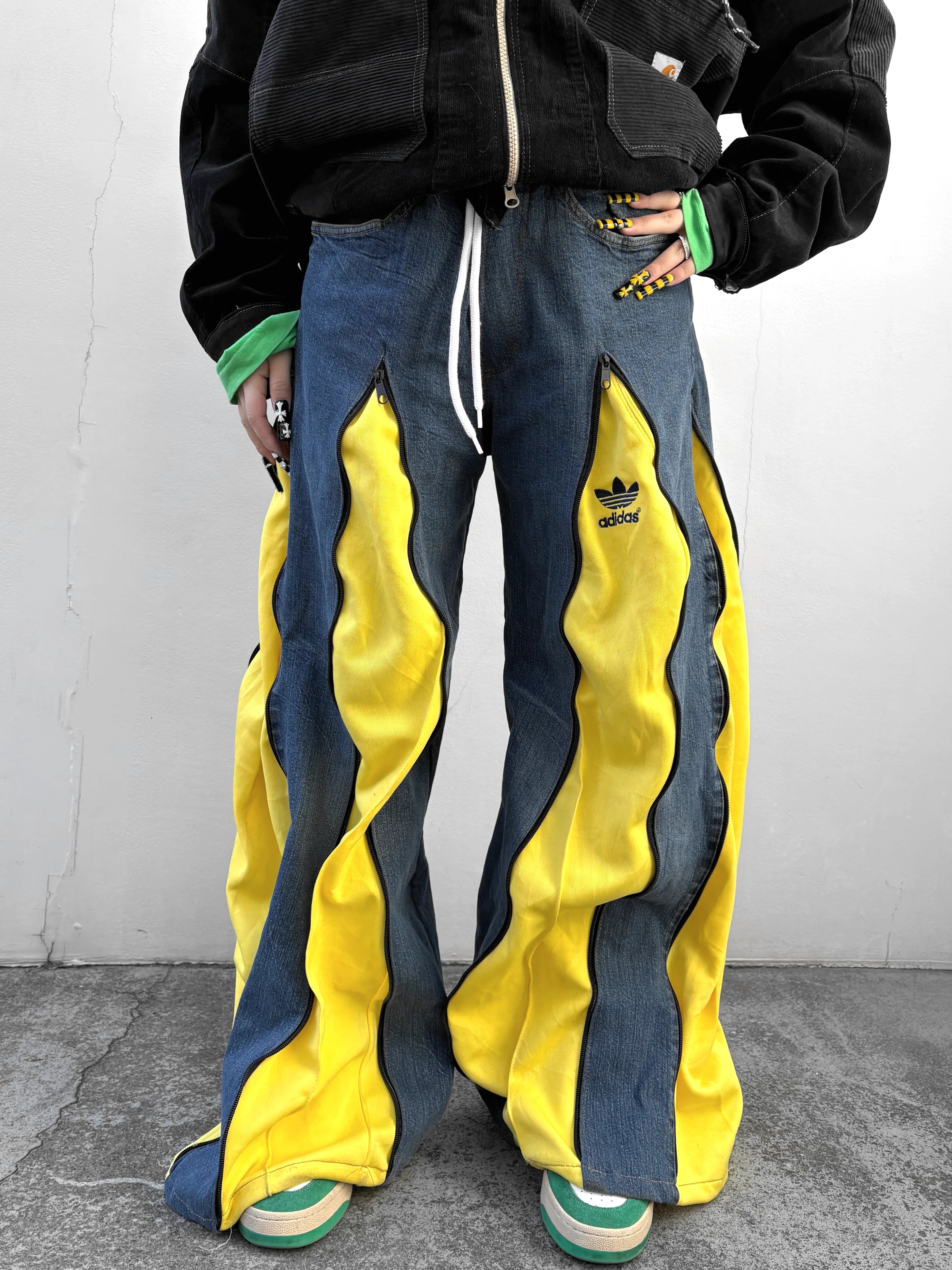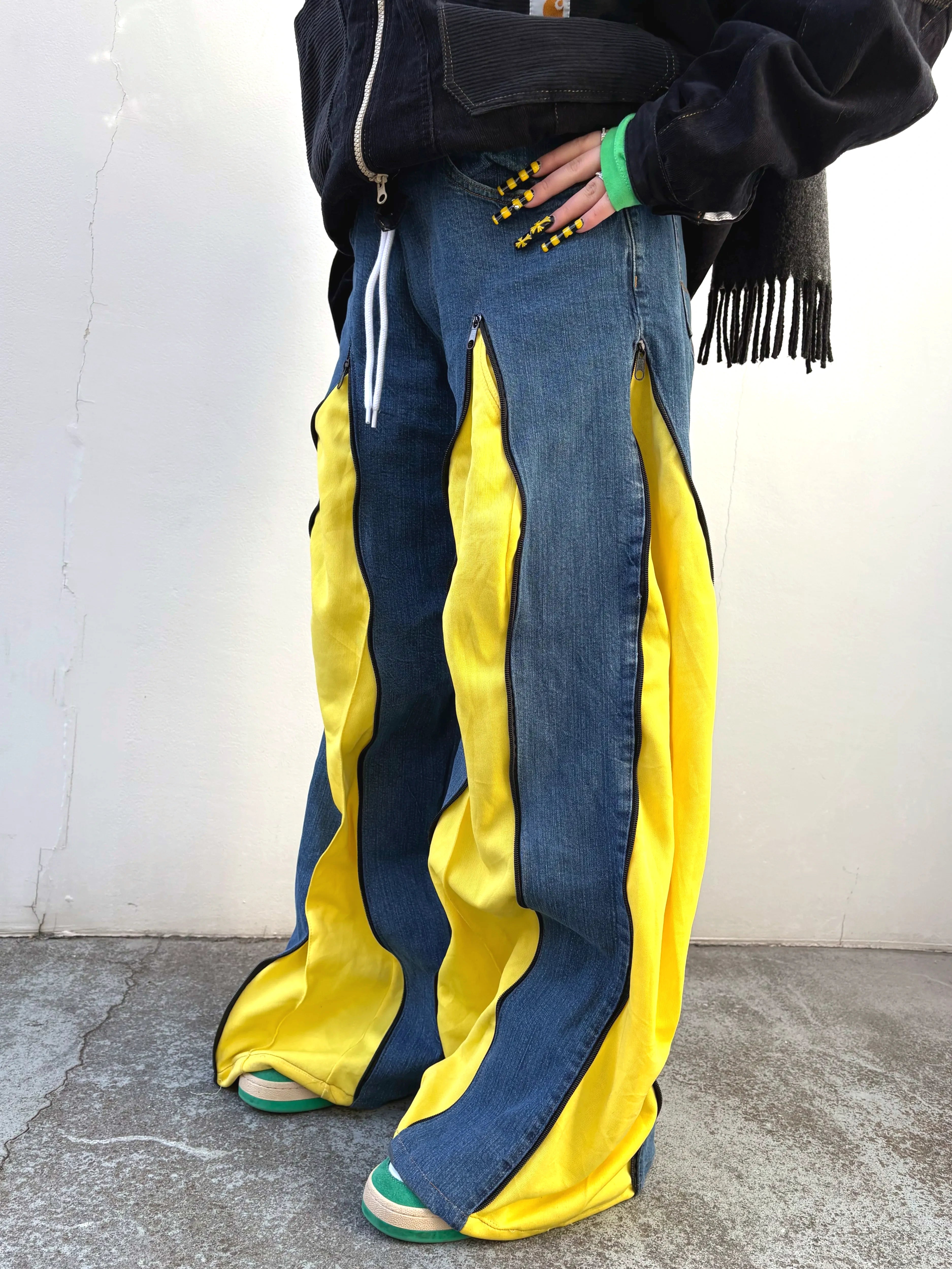 シルエットも自由自在。ZIPで遊ぶリメイクデニムパンツ◎