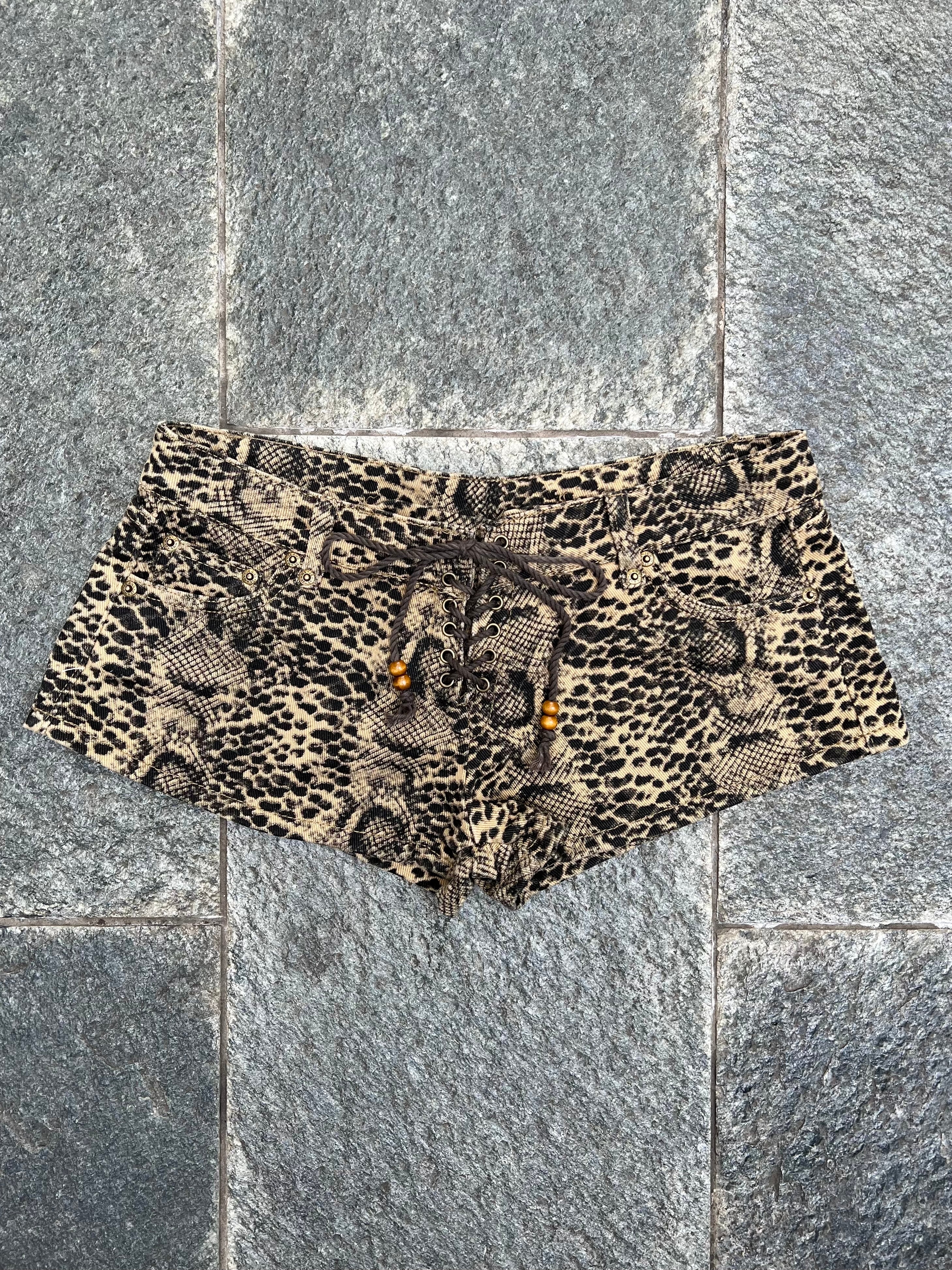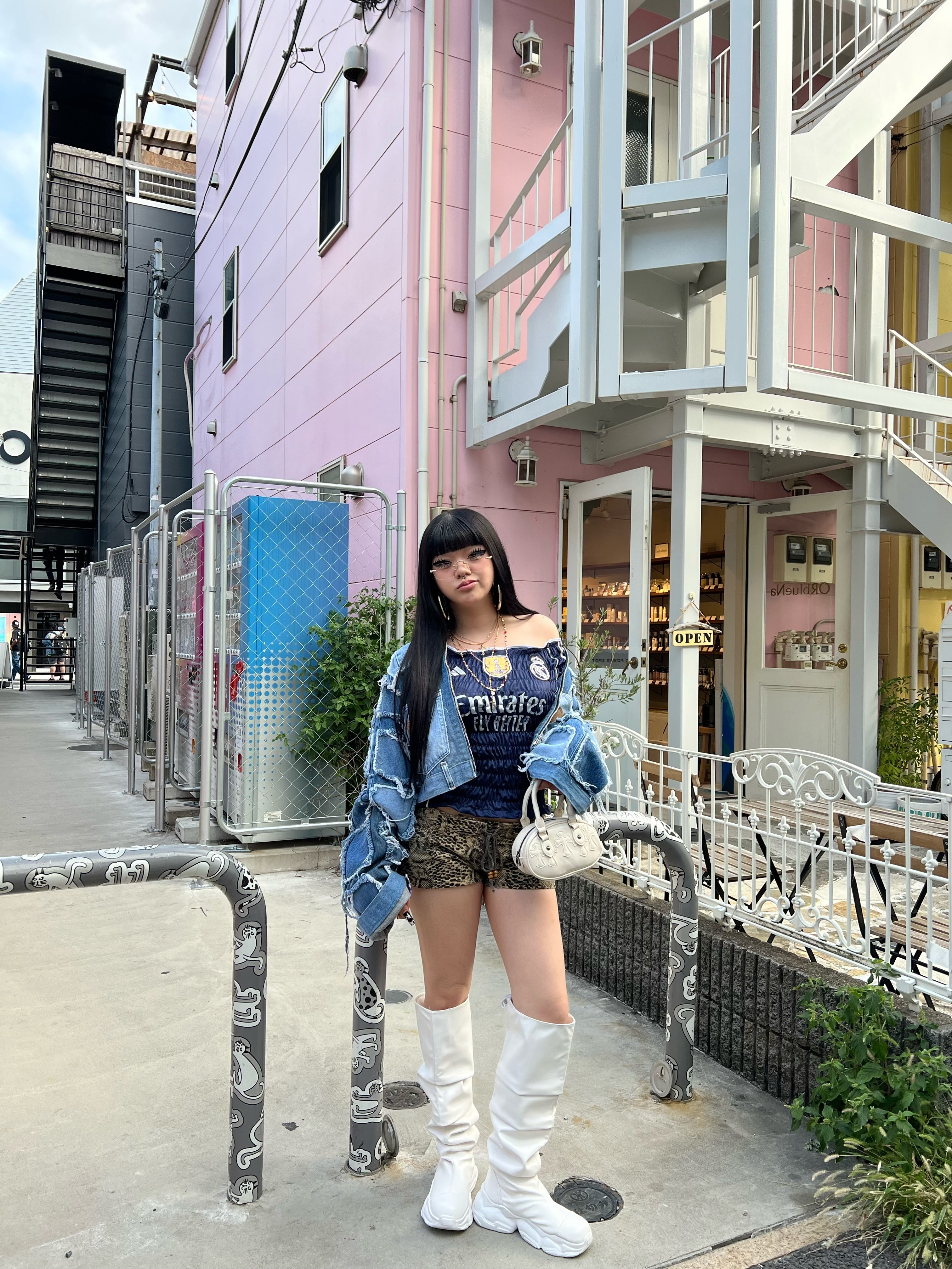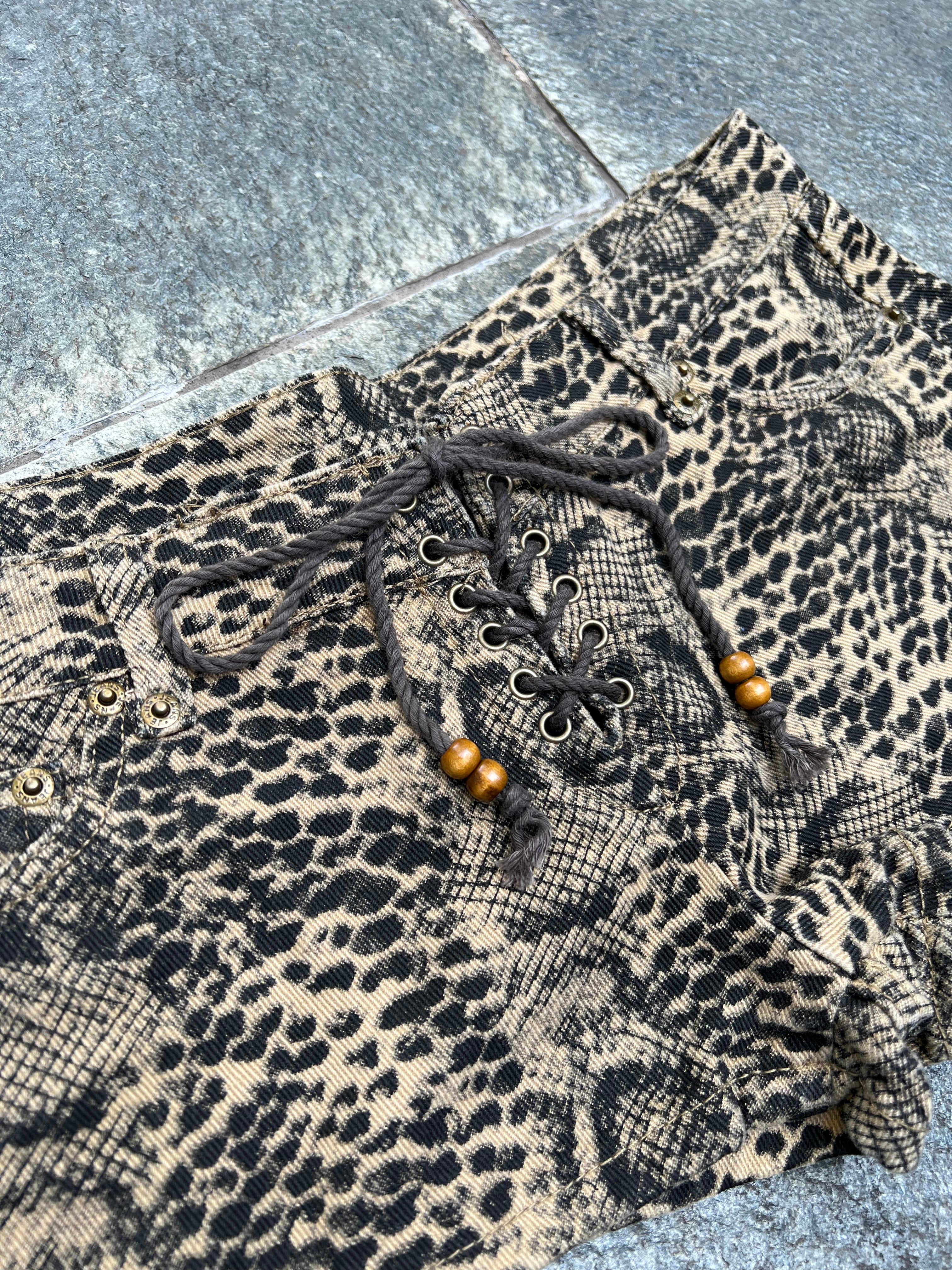 ⚫︎レオパード柄を大胆に取り入れたデニムショーツ