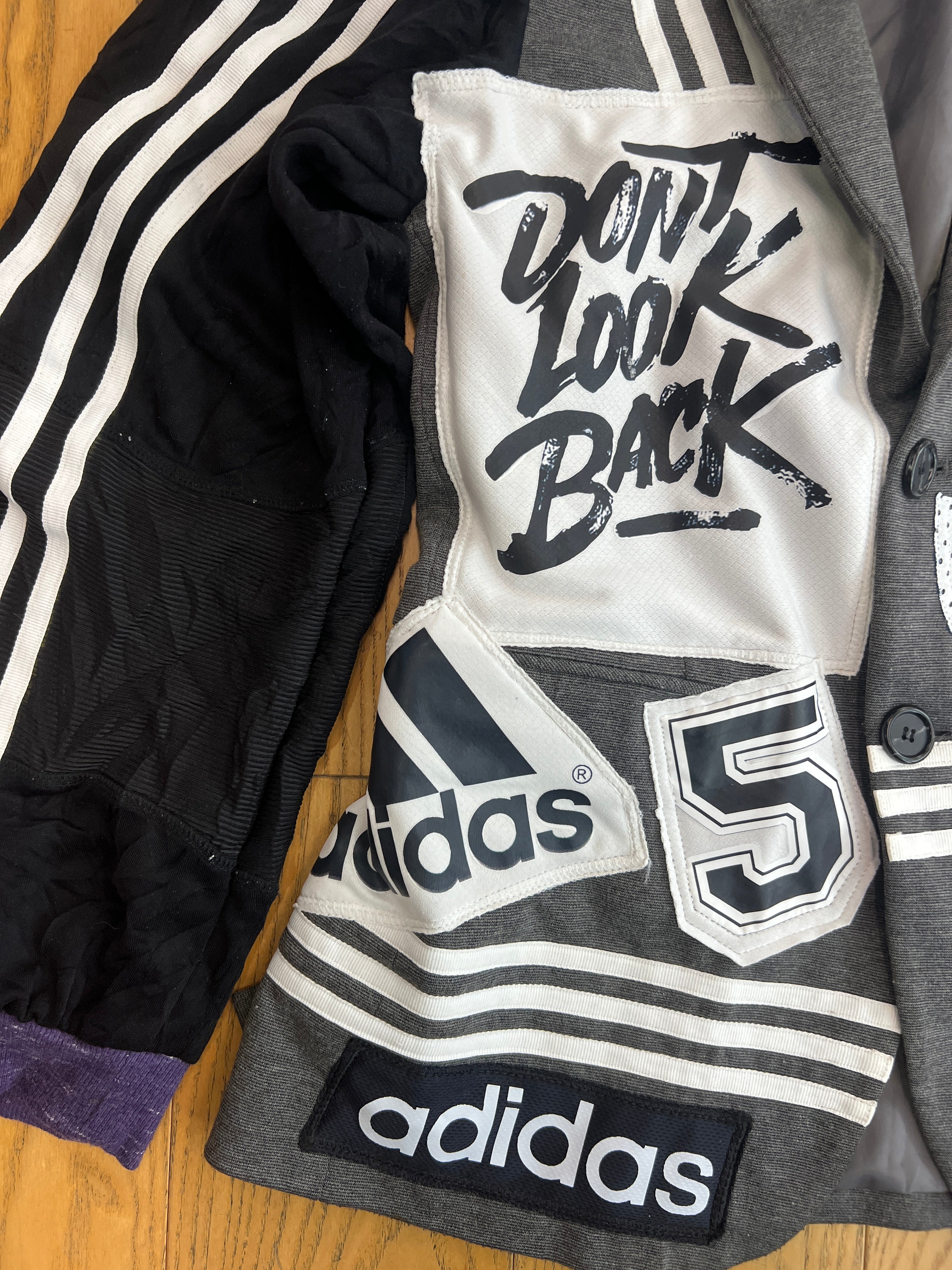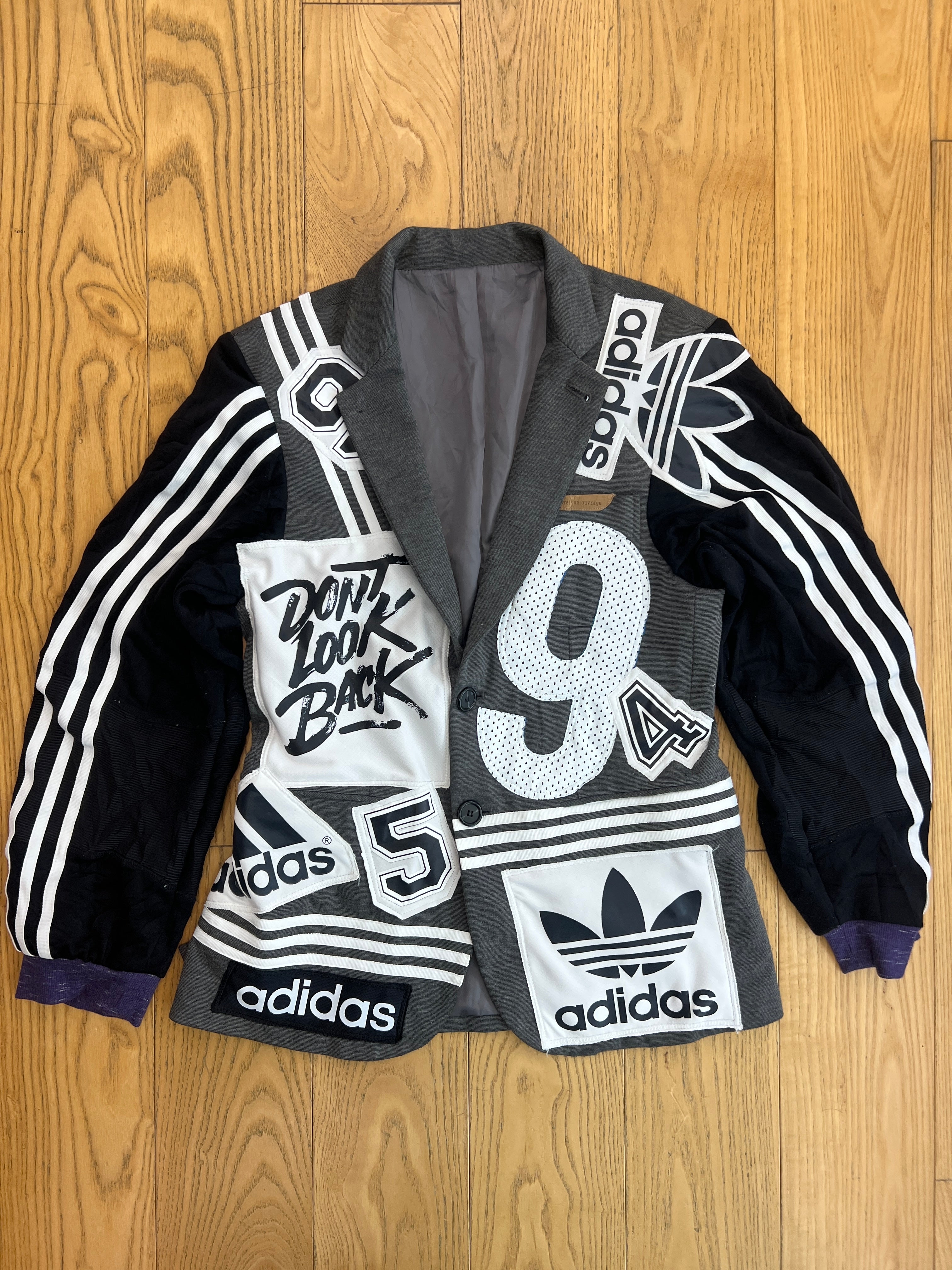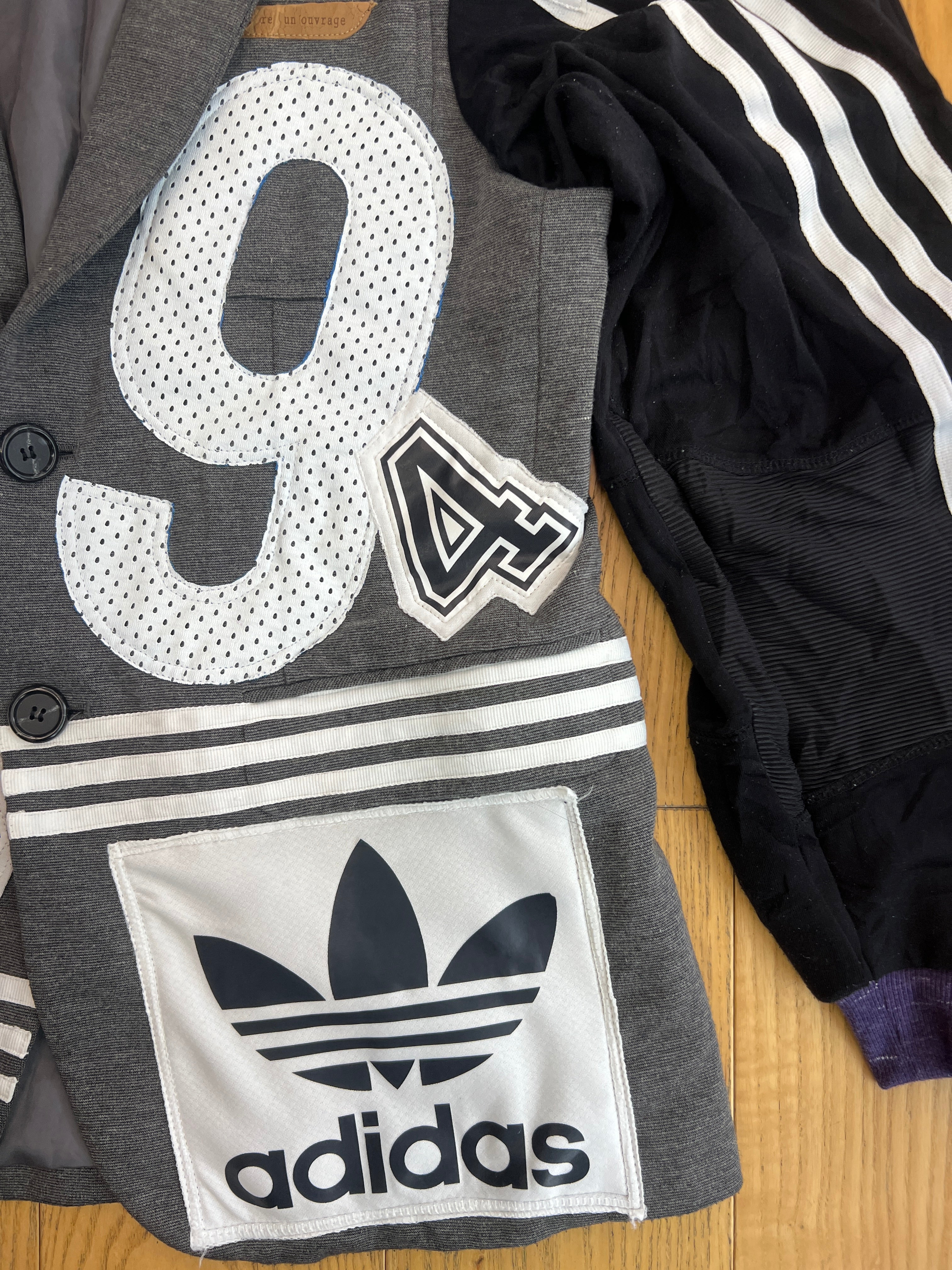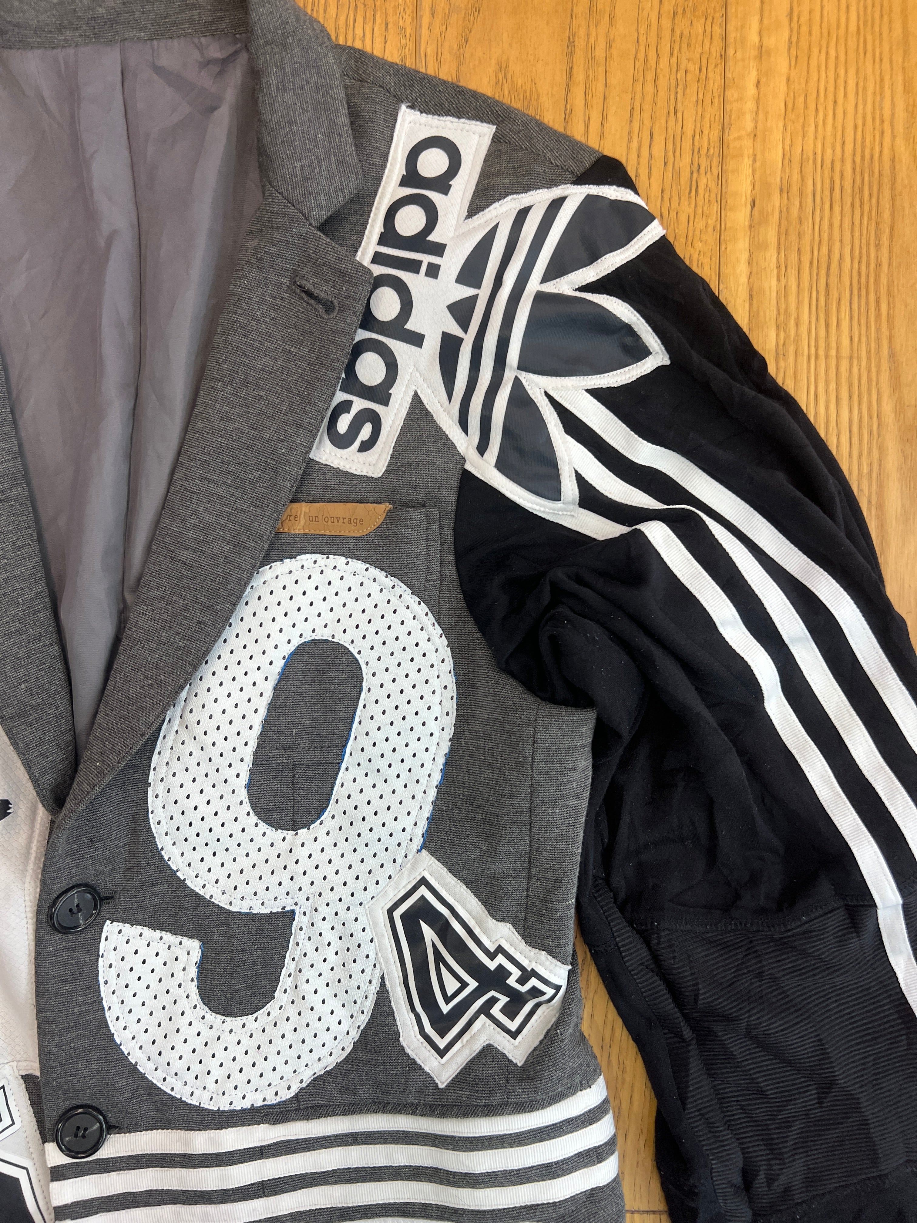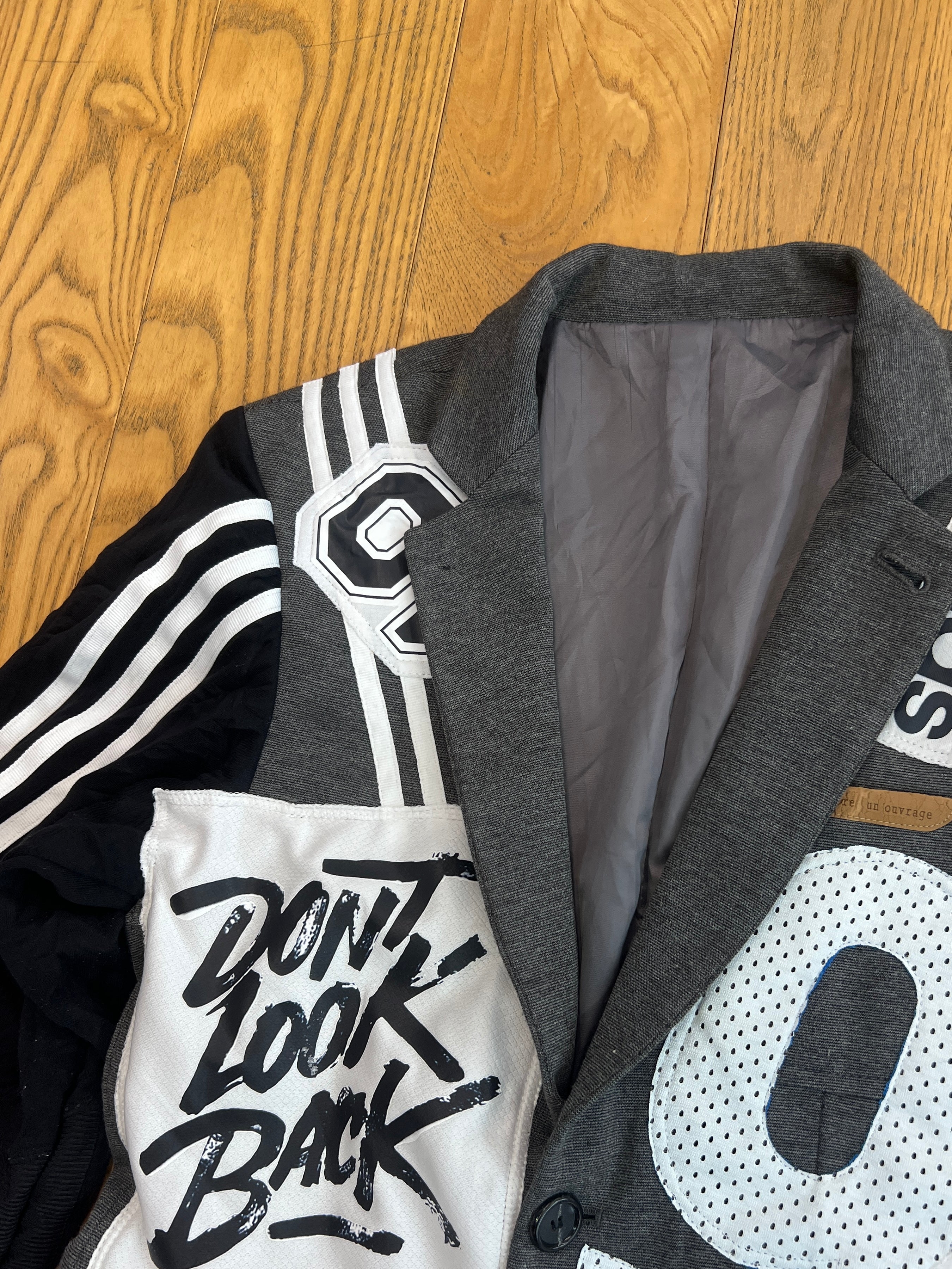 スポーツミックス感が際立つ、インパクト抜群のリメイクジャケット